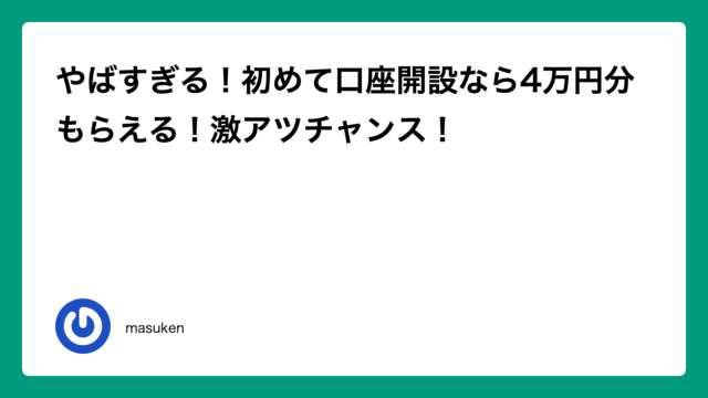 やばすぎる!初めて口座開設なら4万円分もらえる!激アツチャンス!