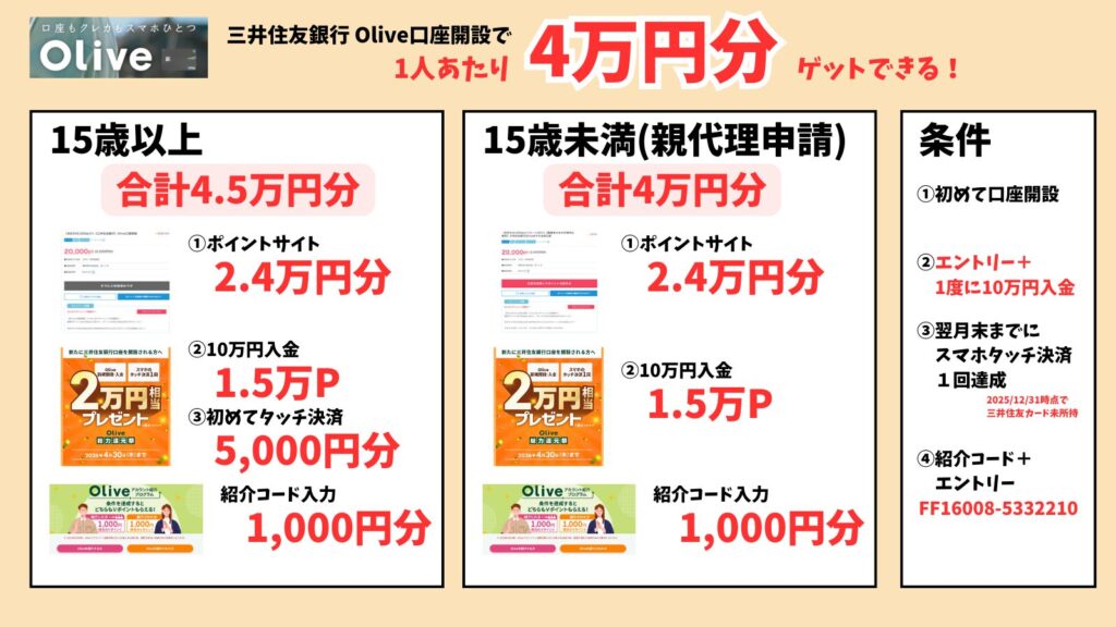三井住友銀行 Olive初めてなら4万円分もらえる!