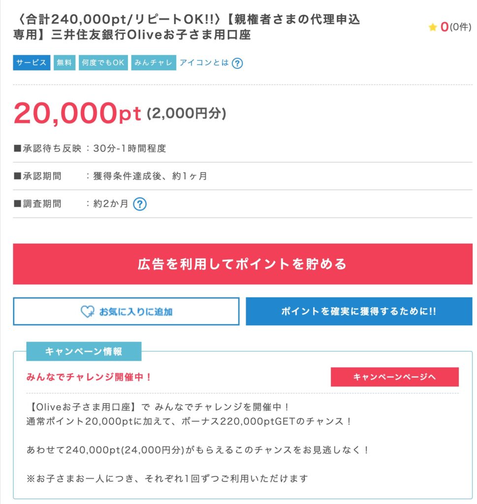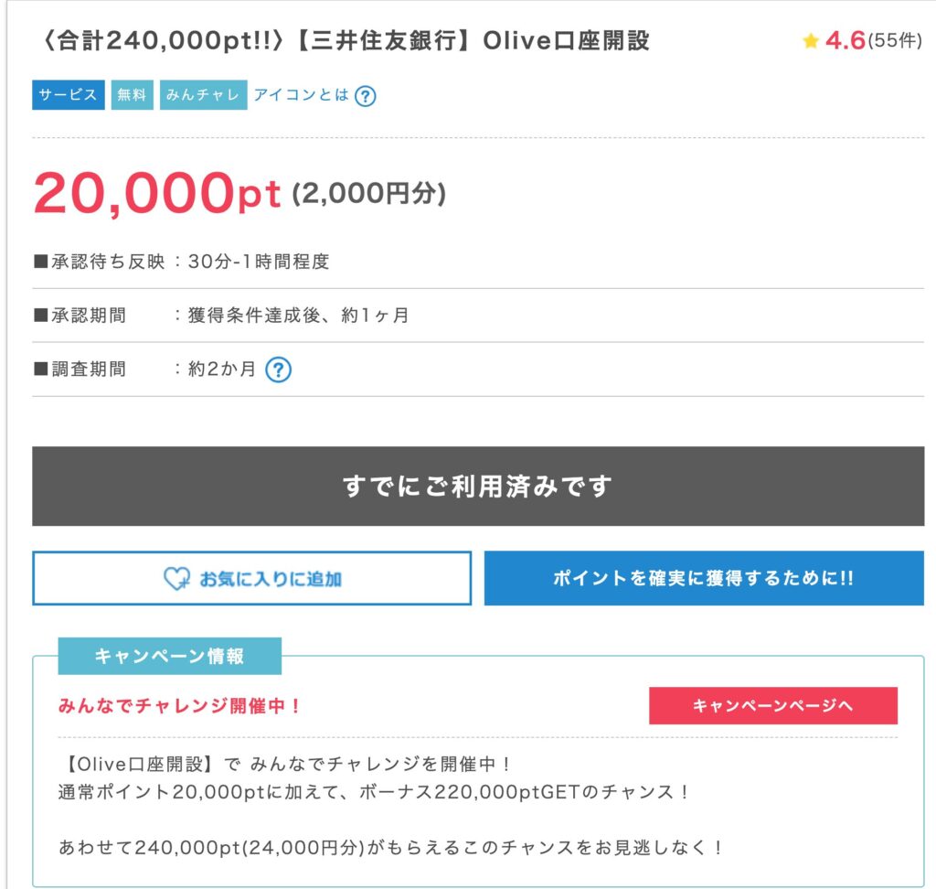 ①ポイントインカム Olive新規口座開設 2.4万円分