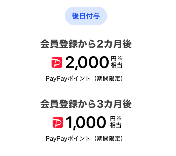 PayPay2000円分 2カ月後の中旬~下旬付与